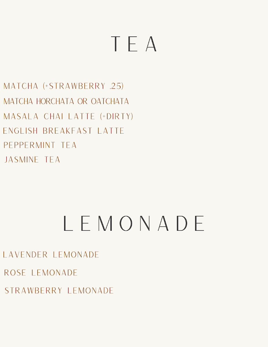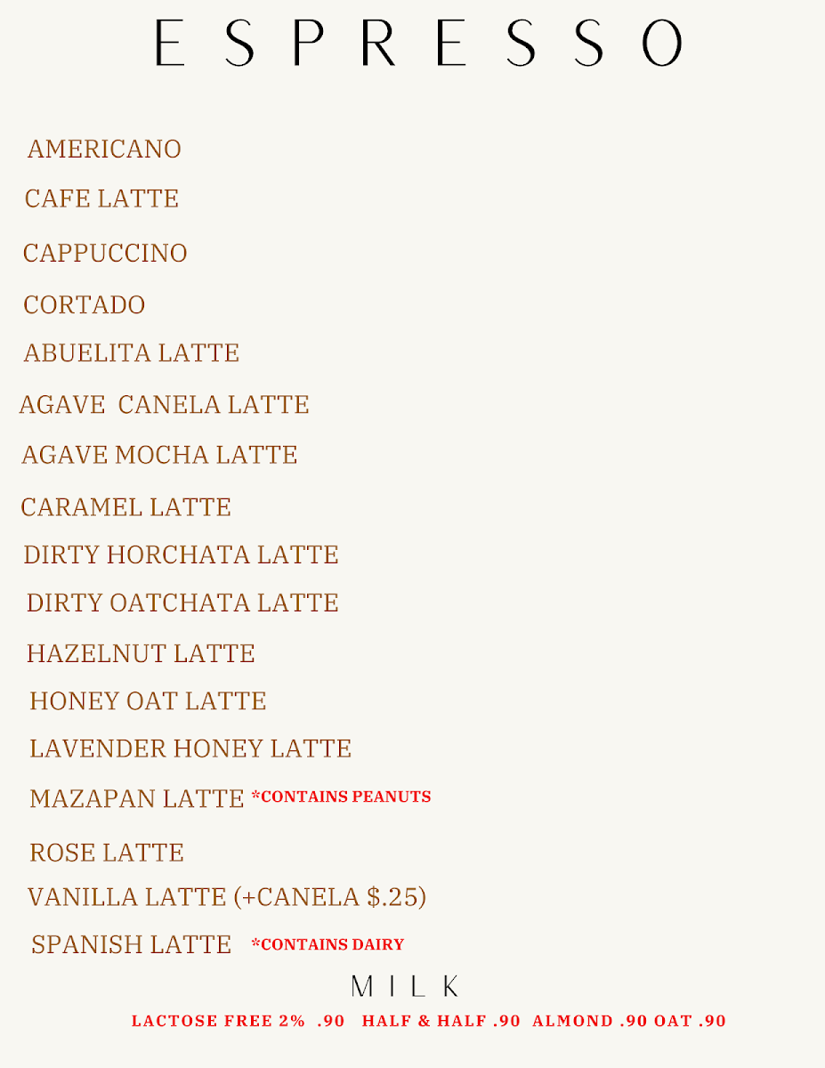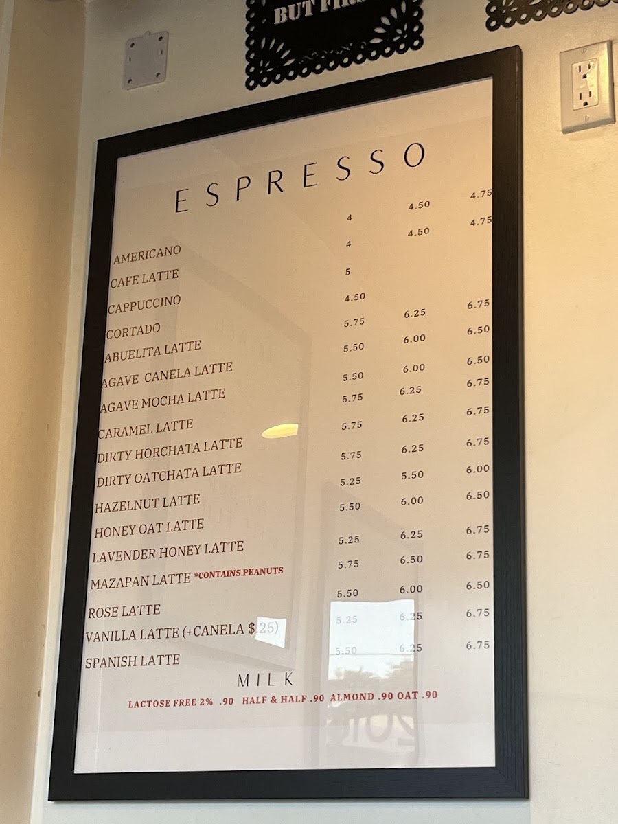 But it doesn't end there! The menu also boasts an array of enticing drinks such as the Lavender Honey Latte, which offers a floral twist that’s both soothing and refreshing, and the Dirty Horchata Latte, a creamy concoction that beautifully melds the classic Mexican horchata flavor with rich coffee undertones. For those feeling adventurous, try the Cinnamon Coconut Latte or a refreshing Watermelon Lemonade available in their summer specials.